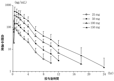 低用量(25mg)から投与を開始するなど慎重に投与すること。